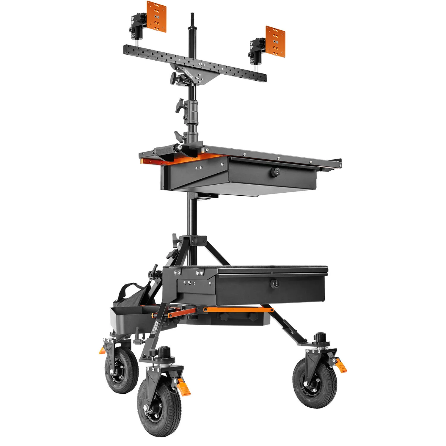 The Easyrig Vario 5 is a versatile camera support system that is designed to reduce the physical strain on the operator while allowing for smooth camera movement. It consists of a body harness, a support line, and an adjustable tension arm that can be tailored to fit different camera setups. The Easyrig Vario 5 is compatible with a range of cameras and can be used with either the Serene Arm or the Stabil 2 Arm.